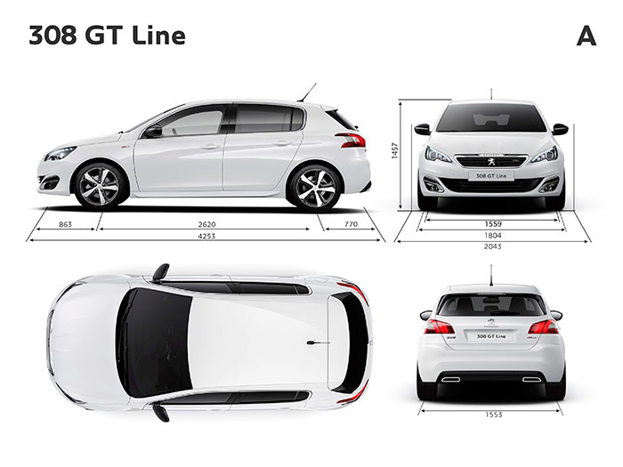 Las cotas del 308 corresponden a un segmento C que no ha caído en el gigantismo, sino que incluso se frena un poco en todas sus dimensiones excepto en la de anchura; la cual, no obstante, apenas si sobrepasa los 1,80 metros.