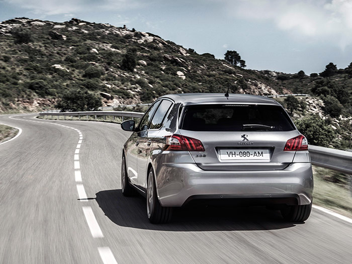 “El comportamiento del bastidor en sí parece estar hecho para no dar sustos al conductor normal en una conducción también normal y tranquila; pero en plan dinámico da bastante trabajo, puesto que obliga a un manejo decidido al volante de una dirección tirando a lenta, anticipando un poco el trazado de la curva, para compensar esos metros iniciales en los que le cuesta entrar en la misma (con llanta 17” el fenómeno se suaviza). Y es que la dirección resulta algo lenta, al menos para esa característica de la suspensión: con 2,95 vueltas de volante y una relación 15,8:1 (para un diámetro de giro de 10,4 m entre bordillos), sería aceptable de ser una de esas direcciones de respuesta instantánea, casi nerviosa; pero no es el caso, ni mucho menos. Y entonces se comprende que la recomendación de presiones de hinchado, mientras no sea a plena carga, sea de 0,3 bar más en el tren delantero respecto al trasero. No obstante, lo realmente impactante de este 308, montado sobre la nueva plataforma, es la untuosidad, lo “aguatado”, lo impresionantemente aislado de la rodadura. Pero no se trata de un aislamiento absoluto: elimina el ruido, las vibraciones y la rasposidad del pavimento, pero no aisla al conductor del comportamiento dinámico del coche, como ocurre en algunos coches de gran lujo. Un resultado excelente, sobre todo teniendo en cuenta que llevamos un eje trasero torsional, y no un multibrazo. No cabe duda de que un porcentaje muy elevado del mérito corresponde a la elección, tarado y características de todos los silent-blocs y y anclajes intermedios interpuesto entre las ruedas y el monocasco, pasando por suspensiones y subchasis. El resultado final es que la sensación de viajar a bordo del nuevo 308, corresponde al menos a la de un coche de un segmento más alto que el suyo”.