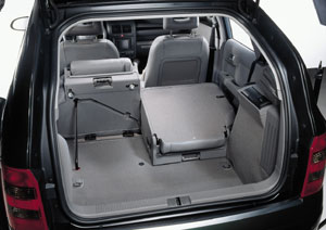 El maletero está dividido horizontalmente en dos espacios. El superior tiene unos dos tercios de la capacidad total (que es 390 litros) y es suficiente para el uso común de un maletero. Si hay que meter objetos voluminosos (como un carrito de niño) empieza a no serlo tanto; tiene el inconveniente de un borde muy alto, hay que alzar mucho las cosas para meterlas en el maletero. Debajo de este maletero hay un segundo hueco amplio, pero que aloja una rueda de repuesto deshinchada. Si se quitan los dos asientos y se unen los dos huecos del maletero, la capacidad total grande: 1.085 litros.