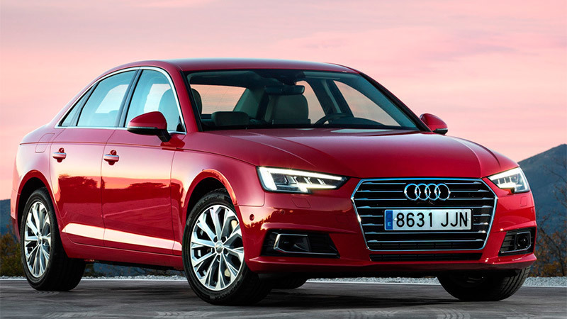 El precio de partida es 35 430 euros, con motor de gasolina, y 39 600 euros, con uno Diesel (precios y el equipamiento del Audi A4). Entre versiones de potencia similar (Diesel de 190 caballos y cambio automático, que es una configuración común en varias de sus alternativas), actualmente es el modelo más barato si se compara con el Alfa Romeo Giulia, el BMW Serie 3 o el Mercedes-Benz Clase C —ficha técnica comparativa—. Además de las versiones normales, están las dos más deportivas de la gama, ambas con motor de gasolina: S4 de 354 caballos y RS 4 de 450 CV, tratadas en informaciones separadas.