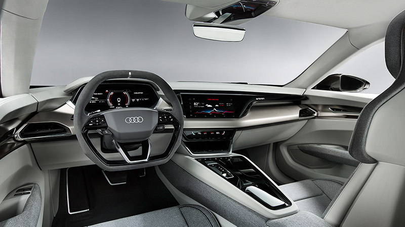 La batería es de iones de litio y tiene una capacidad de 90 kWh. Está colocada por debajo del habitáculo (Audi dice que con ello consigue situar el centro de gravedad casi tan bajo como en un Audi R8) y, en las condiciones del ciclo de homologación WLTP, proporciona una autonomía de más de 400 km. El modelo de producción podrá acelerar de 0 a 100 km/h en unos 3,5 segundos, de 0 a 200 km/h en poco más de 12 segundos y alcanzar una velocidad máxima limitada de 240 km/h.