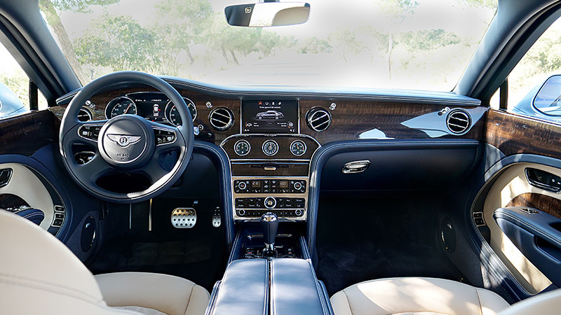 En el Mulsanne, la sensación de lujo que experimentan sus pasajeros viene dada, principalmente, por la calidad de los materiales con los que está recubierto todo el habitáculo y por los precisos ajustes de todas las piezas que lo componen, pero también por el exquisito tacto de todos sus mandos, por el abundante espacio disponible (especialmente en la variante de batalla extendida) y por las numerosas atenciones que ofrece. Incluso el olor, una mezcla entre piel y madera, es diferente al de la mayoría de vehículos que se comercializan actualmente y ayuda a crear esa atmósfera de «coche especial».