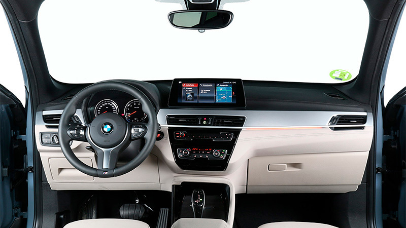 La carrocería está diseñada para que el interior sea luminoso y que el conductor tenga buena visibilidad hacia el exterior. La posición de conducción es elevada, cómoda y natural. Se pueden elegir varios tipos de asientos. Los deportivos (que son los que hemos probado, imagen) son muy cómodos. Entre otras regulaciones eléctricas posibles, sus apoyos laterales se aproximan o alejan entre sí eléctricamente, lo que mejora la sujeción. La unidad que hemos probado tenía la tapicería de cuero «Dakota con perforación Oyster» (galería de imágenes de interior). En el apartado Impresiones del interior de la prueba del X1 2015 hay más información que es aplicable a este nuevo modelo.