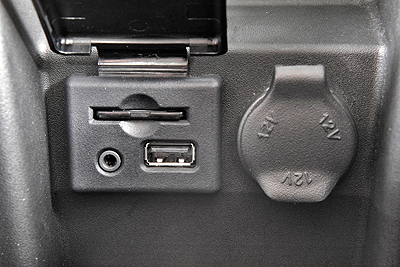 La conexión USB y «Aux-In» está situada en el interior del reposabrazos central. El acceso puede resultar complicado en determinadas circunstancias ya que el hueco no está iluminado y hay que levantar una segunda tapa para poder acceder a las conexiones y a la ranura de la tarjeta SD.