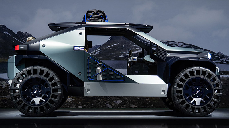 Algunas de las piezas de la carrocería están hechas con un material reciclado llamado Starkle® fabricado a partir de polipropileno. Dacia está trabajando para que sus modelos de producción lleven este material. Está compuesto de un 20 por ciento de plástico reciclado (que es mucho, según Dacia, para lo que viene siendo habitual hoy en día en el mercado). Este material es un poco más costoso de fabricar que el plástico normal.