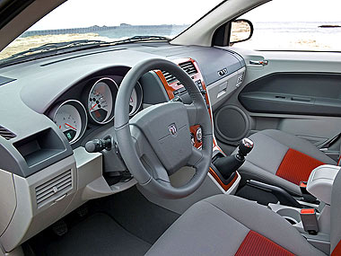 Detrás, tanto la banqueta como los respaldos tienen forma plana, que no sujeta el cuerpo en carreteras de curvas. Aunque por la anchura disponible podrían caber tres personas, el abultado tamaño del túnel de transmisión impide que el pasajero central pueda colocar los pies con comodidad (en otros países hay versiones del Caliber con tracción total).