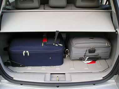 La cubierta enrollable para cubrir el equipaje no lo oculta en su totalidad y es posible ver desde las ventanillas traseras parte de lo que llevamos guardado en el maletero; la versión «S» no tiene este accesorio.