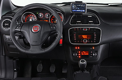 Ahora puede tener faros antiniebla con alumbrado lateral, iluminación diurna o un navegador portátil «Blue&Me TomTom», que se ubica sobre la consola (algunas impresiones de su funcionamiento). Sigue sin poder llevar faros de xenón, encendido automático de faros o retrovisores plegables eléctricamente —fichas de equipamiento Punto Evo 3p y fichas de equipamiento Punto Evo 5p—.