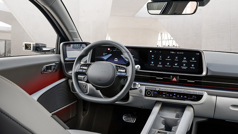 Los retrovisores de cámara proyectan su imagen en unas pantallas de alta definición que van situadas en los extremos del salpicadero (imagen). Es un sistema llamativo, muy vistoso, pero que requiere de un periodo de adaptación por dos motivos: en primer lugar, porque la vista apunta instintivamente hacia el lugar donde normalmente suele estar el espejo retrovisor (y aquí no lo hay, pues su lugar lo ocupa una cámara) y no a la pantalla; y en segundo lugar, porque en una pantalla se pierde mucho la percepción de profundidad, lo que dificulta el cálculo de la distancia de separación con los vehículos que vienen por detrás. No obstante, también tienen ventajas, mejoran el coeficiente aerodinámico y reducen el ruido.