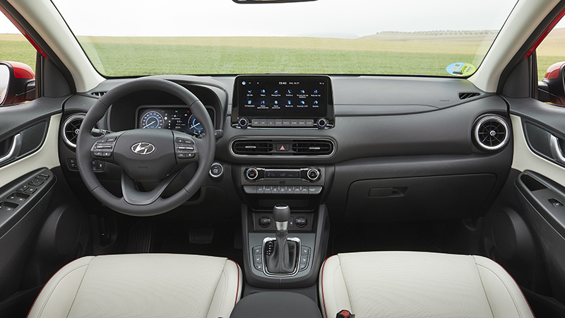Del resto de la gama Kona conserva la buena organización de los mandos en el salpicadero. En conjunto, es un coche práctico y pensado para que sea fácil de utilizar. La posición ligeramente sobreelevada de los asientos hace que entrar o salir de su habitáculo sea cómodo.