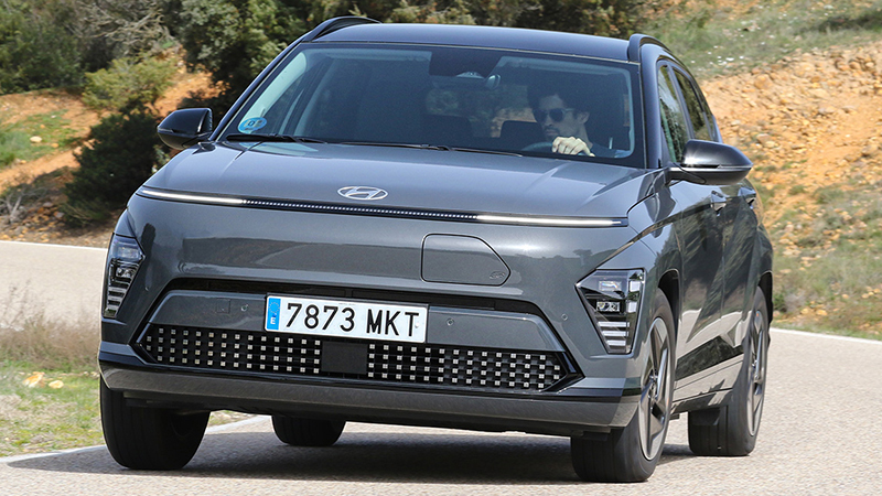 El Hyundai Kona Eléctrico es un SUV eléctrico de 4,36 metros de longitud y tracción delantera. Hay dos versiones, una de 135 CV con batería de 49 kWh (380 kilómetros de autonomía homologada) y otra de 204 CV con batería de 65 kWh (510 km de autonomía). Hasta mayo de 2024, la potencia de estas dos versiones era 218 y 156 CV y el suministrador de la batería era LG en vez de CATL. Están en venta por 37 950 y 42 350 euros respectivamente. Fichas técnicas y de equipamiento.