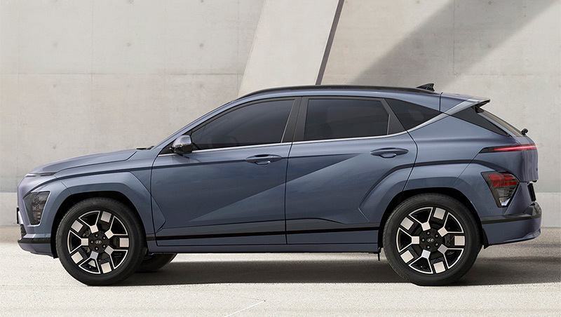 En los Kona con los niveles de equipamiento «deportivos» N Line, muchas partes de la carrocería van pintadas en negro (la parrilla y los retrovisores), otras en el color de la carrocería (los pasos de rueda) y tanto las llantas como los parachoques tienen un diseño específico. Por dentro, además, tienen tapizados y molduras decorativas con detalles en color rojo y el techo y los pilares en negro.