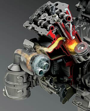 Como en los V8 Diesel, los turbocompresores tienen un dispositivo de paso variable controlado electrónicamente, en lugar de neumáticamente. Así hay un margen de control más grande y es más fácil igualar la presión de los dos compresores.
