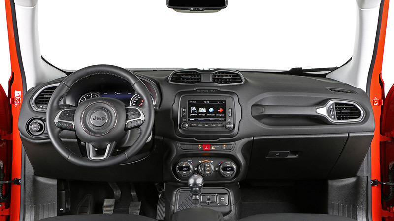 Hay siete niveles de equipamiento: Sport, Longitude, Business, Limited, Night Eagle II, Trailhawk y Deserthawk (a lo largo de la vida comercial del Renegade ha habido otros niveles como Dawn of Justice, Rebel y 75 aniversario). En todos ellos forman parte del equipamiento de serie elementos como el aire acondicionado, la conexión Bluetooth para el teléfono móvil, el freno de estacionamiento eléctrico, el asistente de frenada de emergencia y el programador de velocidad. De serie o en opción, según el nivel, puede tener un asistente por cambio involuntario de carril, un programador de velocidad activo, una alerta por riesgo de colisión frontal, una lerta por presencia de vehículos en el ángulo muerto que dejan los espejos retrovisores, una cámara de marcha atrás y una alerta por tráfico cruzado en la parte posterior (útil para cuando se sale de un aparcamiento en batería). De los tres sistemas multimedia que hay disponibles, nosotros hemos probado el más caro, llamado Uconnect 6.5 Nav (información y prueba en el apartado Sistema Multimedia).
