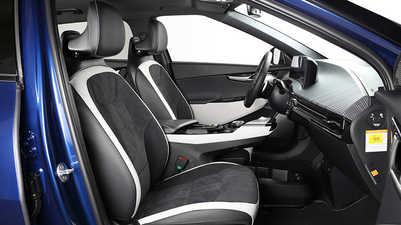 A pesar del parentesco técnico del Kia EV6 con el Hyundai IONIQ 5, los habitáculos de ambos modelos tienen un concepto de diseño diferente. El del Kia arropa más al conductor, en gran parte porque la consola central es grande y fija, mientras que el del Hyundai es más diáfano, da más sensación de «espacio abierto» y la consola central es más pequeña y se puede desplazar (imagen e imagen).