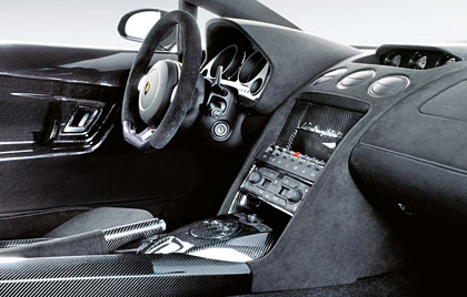 Entre los elementos de equipamiento que podrá tener se encuentran navegador, cargador de CD, cámara de visión trasera, alerón trasero fijo (de serie lleva uno que se eleva cuando se supera una cierta velocidad), un juego de revestimientos interiores en carbono y cinturones de seguridad de cuatro puntos de anclaje.