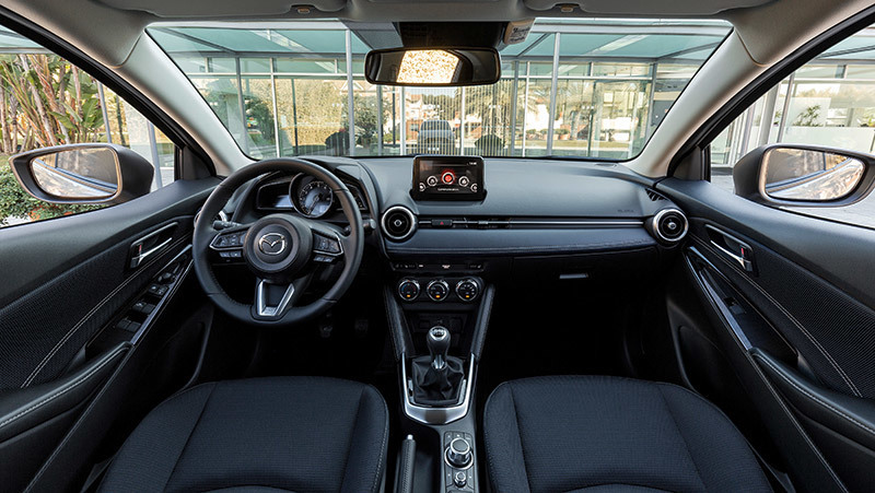 Todos los Mazda2 incluyen de serie unos faros con tecnología LED, sistema multimedia con pantalla de 8 pulgadas y compatibilidad con Apple CarPlay y Android Auto, llantas de aleación (de 15 o 16 pulgadas), sensores de proximidad posteriores o limpiaparabrisas automático. Otros elementos de equipamiento disponibles relacionados con la asistencia a la conducción, son el sistema de mantenimiento de carril, el de reconocimiento de señales de tráfico y un circuito de cámaras exteriores que dan una visual de 360º alrededor del coche para ayudar a maniobrar.