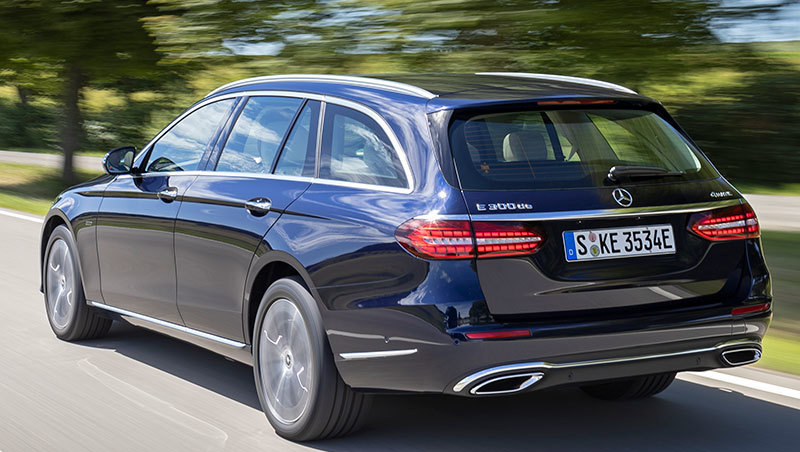 La autonomía homologada de los Clase E híbridos enchufables es mayor, de 53 kilómetros (ciclo WTLP) en modo eléctrico (por lo tanto les corresponde el distintivo 0 de la DGT) y tienen un maletero mucho menor que las versiones que sólo tienen motor de combustión (370 l frente a 540 l en el caso del berlina y 480 frente a 640 en el Estate).