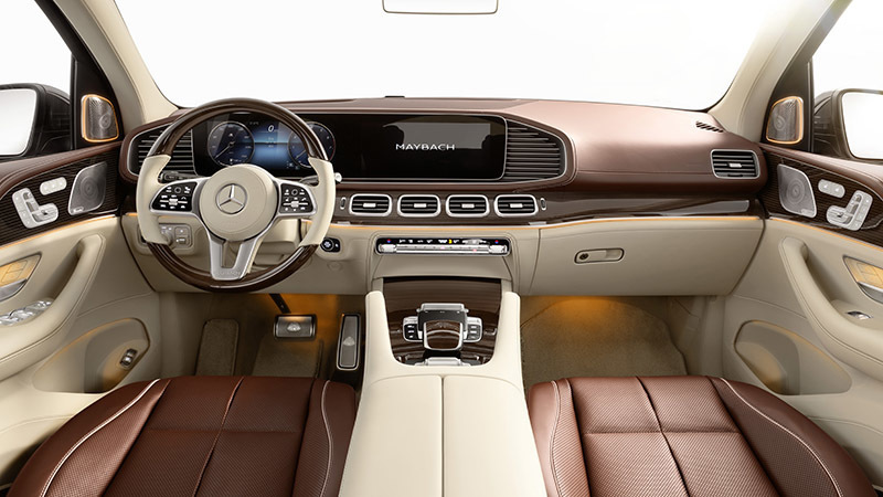 El sistema multimedia es el MBUX, como en cualquier otro GLS. La instrumentación es una pantalla de 12,3 pulgadas (el mismo tamaño que la central) y tiene las mismas posibilidades de configuración. También está disponible la función de órdenes vocales mediante el comando «Hola, Mercedes». Para darle un toque de distinción, Mercedes-Maybach ha añadido un estilo de visualización exclusivo llamado Maybach Classic, con color azul oscuro de fondo y las cifras de los indicadores en dorado rosa. Para los ocupantes de las plazas posteriores hay disponible pantallas de 7,0 pulgadas. El sistema de iluminación ambiental de habitáculo (que incluye el techo) permite elegir entre 64 colores distintos.