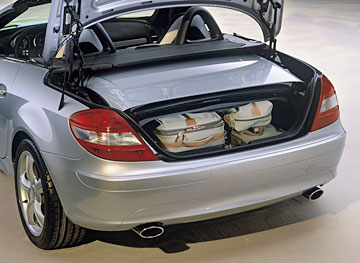 El volumen del maletero con el techo cerrado es 300 l (el anterior SLK tenía 350). Ahora bien, al plegar el techo, el maletero del nuevo queda con 208 l, cuando el del anterior se quedaba con 145 l. El hueco que queda para depositar y extraer bultos es estrecho, por lo que no se pueden poner y quitar maletas grandes con el techo descubierto.