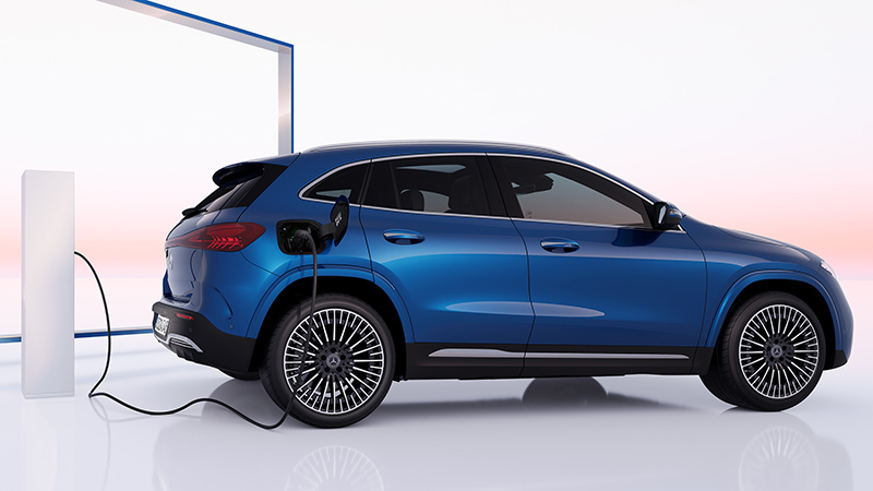 Los nombres de los niveles de equipamiento no cambian, siguen siendo Progressive, Electric Art y AMG Line (de menos a más equipados). Cambia el diseño de algunas llantas, aunque los tamaños disponibles son los mismos, 18, 19 y 20 pulgadas. Para la carrocería hay dos nuevos colores, «spectral blue» y «high-tec silver». En el caso de pedir el nivel AMG Line, los pasos de ruedas van pintados en el mismo color de la carrocería (en el EQA 2021 siempre son de plástico negro).