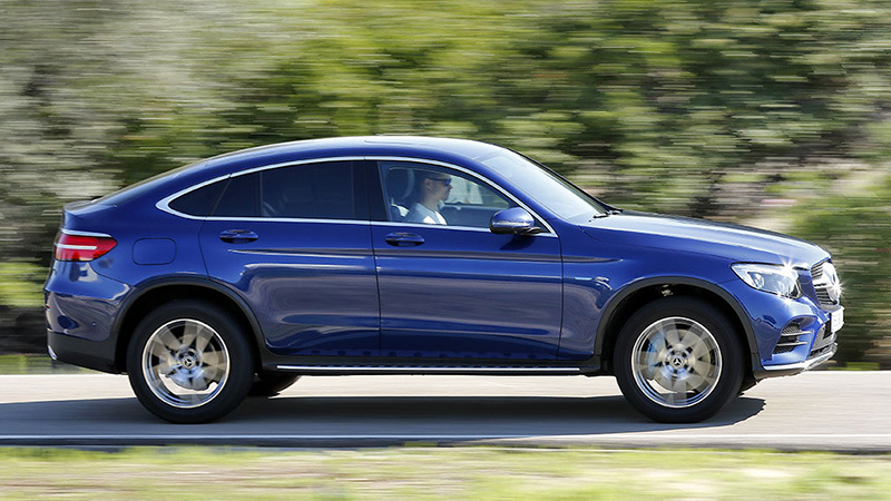 Los GLC Coupé llevan de serie una suspensión denominada «Tren de rodaje deportivo», que es una suspensión de mayor firmeza que la que trae el GLC estándar (en este, el «Tren de rodaje deportivo» es una opción que cuesta 472 €). En cambio, en el GLC 350 e 4MATIC Coupé esto no es así. Esta versión tiene de serie lo que Mercedes-Benz llama «Tren de rodaje con mayor altura libre sobre el suelo». Se trata de una suspensión que no está disponible para el resto de GLC Coupé (pero sí en el GLC normal) y que eleva la carrocería 20 mm con respecto al suelo.