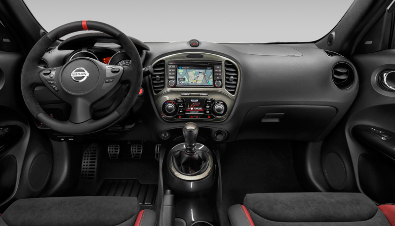 La carrocería puede estar pintada en tres colores —blanco perlado, negro metalizado o gris plata— y, respecto a Juke normal, tiene unos paragolpes distintos, unas aletas más anchas y unos elementos decorativos en color rojo (entre ellos, las pinzas de freno, una diferencia respecto al anterior NISMO de 200 CV).