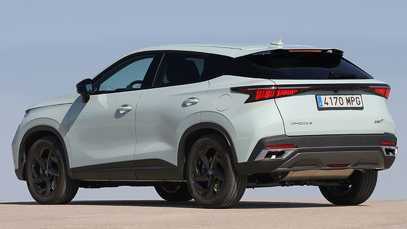 El bloque motor de ambas fases es el mismo, pero el de menor potencia tiene una serie de modificaciones en su sistema de descontaminación que le permiten cumplir con la Euro 6e (ficha comparativa), una etapa de la normativa europea que fija un margen más estrecho en la desviación de las mediciones de óxidos de nitrógeno y número de partículas. Aprovechando este cambio, Omoda también actualiza el aspecto del habitáculo (aquí también hay un evidente paso adelante). El exterior se mantiene igual excepto por detalles ornamentales de poca relevancia (por ejemplo, desaparece la designación 290T del portón, se añade la palabra «OMODA» en la pieza de plástico que une los pilotos y se instalan unas barras de techo de aluminio). También hay cambios en la suspensión para hacerla más firme (algo que se nota para bien) y en la dirección (que sigue siendo igual de mala).
