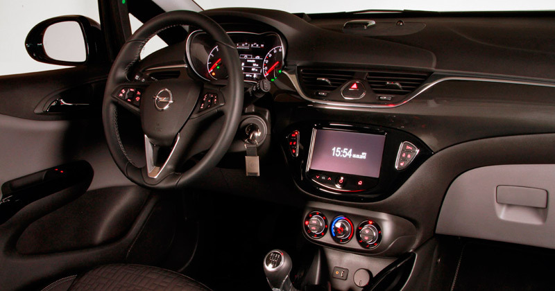 Los plásticos del salpicadero son de buena calidad y la sensación que dan los ajustes entre las diferentes piezas es la propia de un coche bien hecho. Hay partes que recuerdan mucho a las del Opel ADAM (por ejemplo, la consola). Puede tener el sistema multimedia IntelliLink (cuesta 250 €), cuya información se muestra en una pantalla táctil a color de 7 pulgadas (imagen). Este sistema multimedia, según Opel, destaca por su facilidad para conectarse con dispositivos Android y Apple, así como por la posibilidad de poder instalar aplicaciones. En la sección Sistema Multimedia del Opel ADAM hacemos un análisis extenso del sistema IntelliLink (puede que parte de la información dada no sea aplicable al sistema que lleva el Corsa).