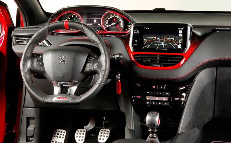 El puesto de conducción es similar al del resto de 208. El asiento no se puede colocar cerca del suelo y la columna de la dirección queda algo baja, ya que Peugeot ha diseñado el salpicadero para que el cuadro de instrumentos se vea por encima del aro del volante y no por el interior. Este diseño es un inconveniente para las personas de estatura superior a la media, que notarán que la dirección queda baja. Hay personas a las que les parece que los pedales quedaban muy cerca, lo que les obligaba a llevar las piernas muy flexionadas. En el artículo de la gama 208 hay más información sobre el habitáculo y el maletero.