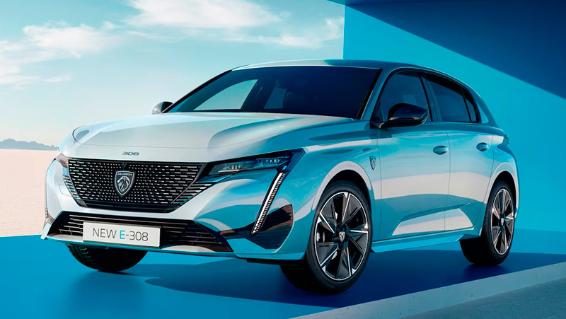 La versión eléctrica del Peugeot 308 se llama E-308 y se puede elegir con carrocería de cinco puertas (5p) y familiar (SW). Tiene un motor de 156 CV y una batería de 51 kWh que le permite recorrer 413 km entre recargas según la normativa WLTP. Está en venta por 38 450 € (precio, ficha y equipamiento de la gama Peugeot E-308).
