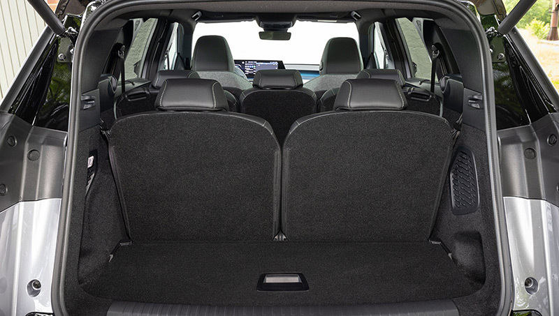 Bajo el piso del maletero, en el espacio que queda más cercano al portón, hay un doble fondo de 70 litros donde caben perfectamente los cables de recarga de las versiones eléctricas e híbridas enchufables (imagen) y donde hay un lugar especialmente diseñado para colocar la cortinilla cubre equipaje cuando ésta no se usa. También hay perchas en las paredes laterales, ganchos en el piso y un plafón de iluminación en la pared izquierda (da una luz bastante tenue). El portón tiene apertura y cierre automatizados en las versiones GT, las más equipadas.