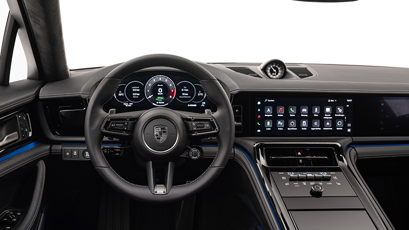 El interior refleja el lenguaje de diseño que actualmente Porsche emplea en sus modelos, con partes que recuerdan al Cayenne y el Taycan. Delante hay tres pantallas, una para la instrumentación (que es ligeramente curva), otra para el sistema multimedia y una opcional para el acompañante. El módulo de manejo del climatizador combina mandos táctiles con mecánicos y la palanca del cambio ahora se ubica a la derecha del volante, permitiendo que en la consola central haya más huecos. El maletero tiene un volumen de 494 litros (421 en las versiones PHEV). Más información en las impresiones del interior.