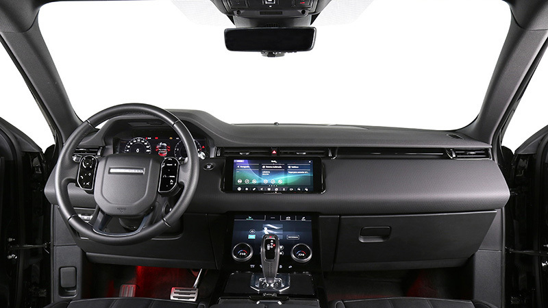 El aspecto del salpicadero guarda una gran similitud con el del Land Rover Range Rover Velar. El aspecto más llamativo está en la consola central, donde hay dos pantallas de 10 pulgadas con las que se maneja, por un lado, el sistema multimedia y por otro, el climatizador y otras funcionalidades del vehículo (imagen). A este conjunto de pantallas Land Rover lo denomina Touch Pro Duo. También es posible pedir un sistema de información proyectada en el parabrisas con indicaciones a color.