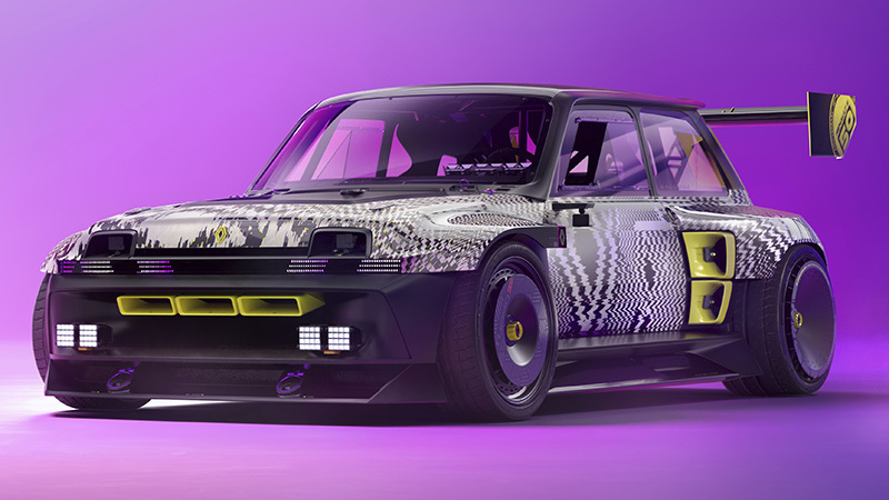 El Renault R5 Turbo 3E es un prototipo de dos plazas cuyo diseño se inspira en el Renault 5 Turbo y Turbo 2 (las versiones más deportivas del Renault 5) y en el mundo de los videojuegos. Está concebido para hacer drift (derrapajes largos y controlados) y participar en yincanas. Una versión digital se utilizará en el mundo de las competiciones de coches en línea.