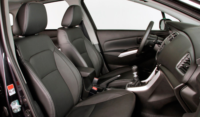 La postura de conducción del S-Cross es buena porque las regulaciones del volante y del asiento son amplias y permiten que personas de diversa envergadura se acomoden. Los asientos tienen un mullido blando que los hace cómodos, pero no proporcionan demasiado agarre lateral al conducir por carreteras de curvas. En las versiones con el nivel de equipamiento más alto, «GLX-EL», están tapizados de una piel muy agradable al tacto, pero con una superficie muy deslizante que provoca que el cuerpo se mueva más aún. Tienen un sistema de calefacción regulable en dos intensidades que funciona de manera rápida y eficaz.