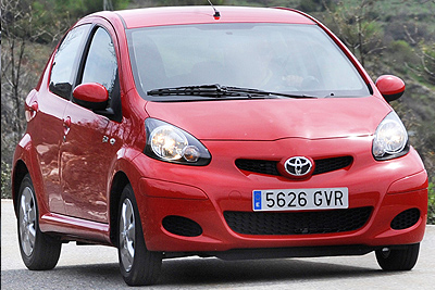 El Toyota Aygo es un pequeño utilitario de 3,41 metros que está disponible con carrocería de tres puertas desde 7.350 € (todos los precios) y con carrocería de cinco puertas a partir de 7.650 € (todos los precios). Está homologado para cuatro ocupantes.