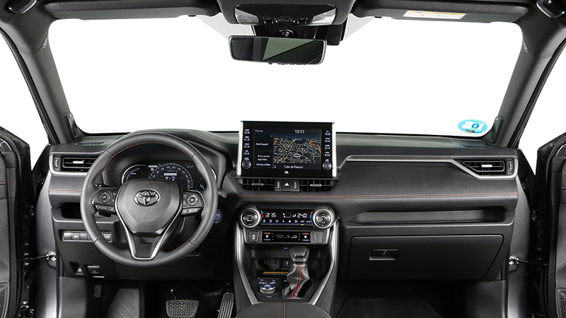 El paquete de asistentes a la conducción del RAV4 Plug-in Hybrid, denominado Toyota Safety Sense, cuenta con detección de obstáculos y peatones con frenada de emergencia, programador de velocidad activo, alerta por abandono involuntario de carril con mantenimiento del centrado, cambio automático de luces cortas y largas y reconocimiento de señales de tráfico. En el equipamiento de serie también está incluido un sistema de proyeción de información en el parabrisas, la posibilidad de precalentar el habitáculo a distancia y un sistema multimedia con pantalla de 8 o 9 pulgadas (Advance y Style Plus respectivamente) compatible con Apple CarPlay y Android Auto. Además, ambos sistemas multimedia tienen mayor capacidad de procesamiento que el de los RAV4 220H. Las llantas tienen un diseño específico y son de 18 o 19 pulgadas de diámetro (Advance y Style Plus respectivamente).