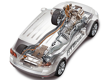 El Touareg Hybrid tiene una peculiaridad interesante: el motor de gasolina está sobrealimentado por un compresor volumétrico. Si otra marca no se adelanta, será el primer híbrido con motor de gasolina sobrealimentado. El prototipo Porsche Cayenne Hybrid lleva un motor de gasolina atmosférico. El Cayenne y el Touareg que están actualmente a la venta comparten muchos elementos.