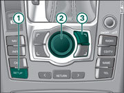 Mantenga pulsadas simultáneamente la tecla de función [SETUP] - 1-, el botón central -2- y la tecla de menú superior derecha -3-. |