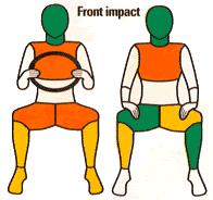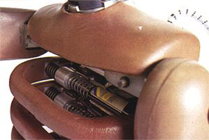 Pecho. (Impacto frontal): Las «costillas» del Hybrid III llevan sensores para registrar el aplastamiento de la caja torácica por el cinturón o el volante