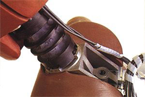 Pantorrillas. Los sensores del Hybrid III miden la compresión, torsión, inclinación y esfuerzo de cizalla sobre la tibia y el peroné.