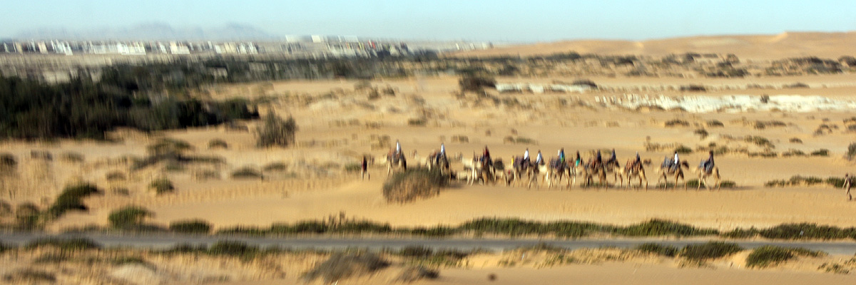 Eso desenfocado son unos camellos o dromedarios. No veo las jorobas.