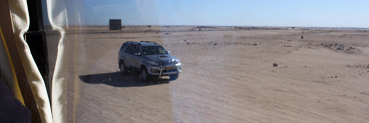 Tráfico en la "carretera". En Namibia se conduce por la izquierda.