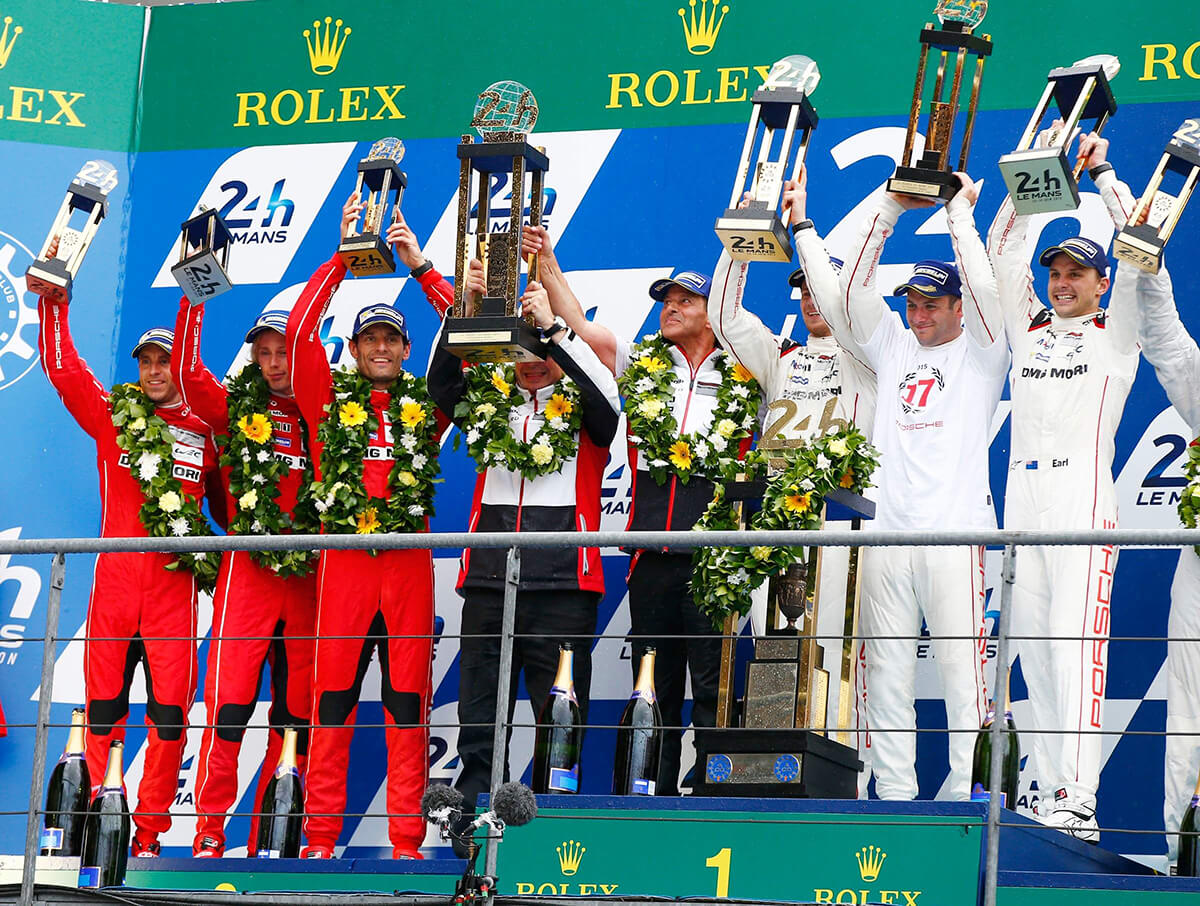 La carrera terminó con dos Porsche 919 Hybrid en cabeza (coche 19: Nico Huelkenberg, Nick Tandy y Earl Bamber; coche 17: Timo Bernhard, Brendon Hartley y Mark Webber) seguidos del Audi R18 e-tron quattro (coche 7: Fässler, Lotterer y Tréluyer). El Porsche ganador dio 395 vueltas a una media de 224,2 km/h —una vuelta más que el segundo coche y dos más que el tercero— y paró 30 veces en el garaje. En cambio, el coche con más velocidad punta fue el Audi con el dorsal 8 (345,6 km), mientras que el Audi número 7 fue el que hizo la vuelta rápida en carrera.