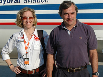 y a Magda Salarich al pie del avión.