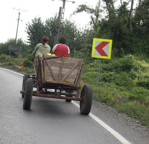 Desde Belgrado a Timisoara (Rumanía) ya no hay autopistas. Hay carreteras secundarias que vienen a ser como las regionales de España. Si hasta ese momento podíamos hacer una media superior a 100 km/h sin problemas, desde ese momento, la media se redujo un 40% y esa será la tónica durante los próximos días. Por esas carreteras circulan vehículos pesados y lentos, carros con animales y otros vehículos. No se puede ir deprisa.