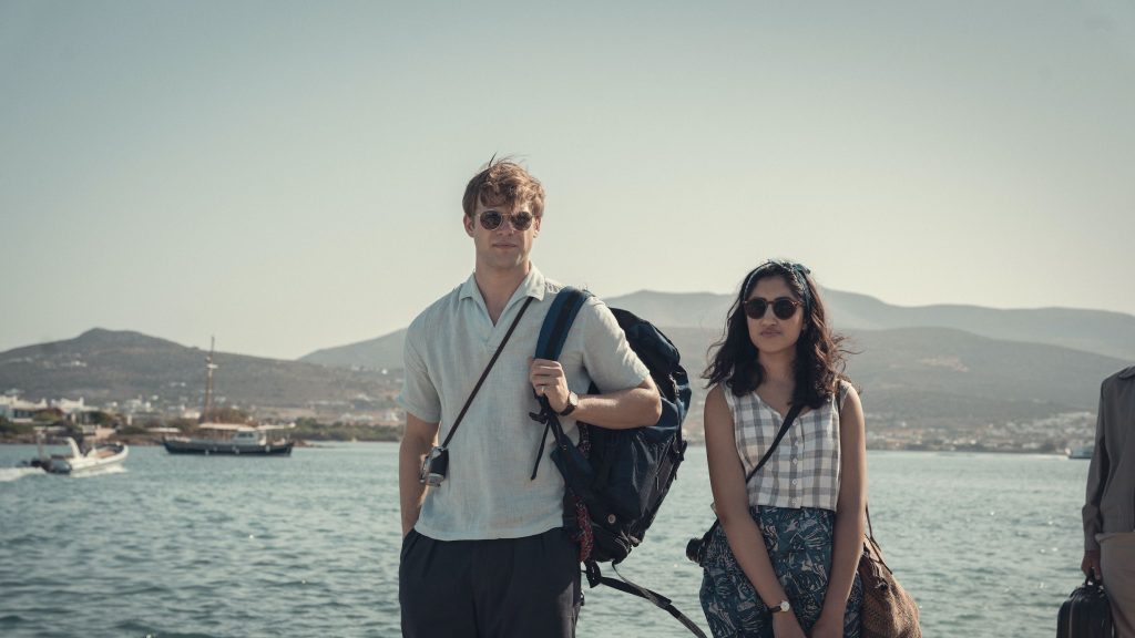 Déjenme empezar por la pareja protagonista, que es cojonuda. Él es Leo Woodall, al que vimos en la segunda temporada d White lotus; ella es Ambika Mod, a la que pudimos ver en Esto te va a doler. La premisa de la serie es que estos dos amigos están en realidad enamorados, pero no son capaces de verbalizarlo y por tanto de sublimarlo. Las razones son variadas, pero la principal es que son de universos completamente distintos. Él un niño rico de familia bien sin más preocupación que disfrutar de la vida y ella es una chica de familia humilde y militante de cualquier causa que considere justa. Tiene sentido que ninguno de los dos vea en su posible relación algo que pueda sobrevivir durante demasiado tiempo.