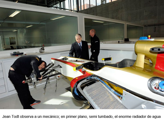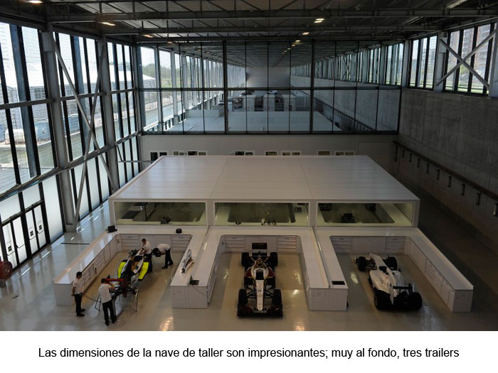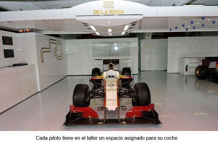 No conozco en directo ni Maranello (que ha ido creciendo en sucesivas ampliaciones, y cuyos últimos edificios son impactantes) ni tampoco la sede de McLaren, que esa es nueva y fruto de un proyecto único. Mi compañero Juan Collin, que acaba de visitarla para luego hacerse un raid desde allí hasta MonteCarlo al volante de un MP4-12C (los hay con suerte), se quedó extrañado cuando, en el vestíbulo de entrada, notó que los pies se le quedaban pegados a la moqueta del piso. Y es que por debajo hay unos potentes aspiradores que limpian la suciedad de la suela de los zapatos, para que no entren partículas indeseadas no ya en los talleres de montaje de las mecánicas, sino en todo el edificio. Lo de HRT en la Caja Mágica no llega a tanto, pero desde luego, tiene el aspecto de un hospital sometido a la más estricta asepsia.