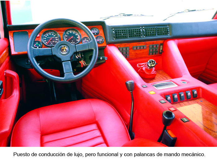 Porque el LM-002 montaba, ni más ni menos, el 5.2 V-12 original del Countach, ligeramente rebajado de compresión (444 CV a 6.800 rpm en vez de 455 a 7.000; y 51 mkg de par a 4.500 en vez de 5.200 rpm). Por entonces ya existía el Range Rover, pero los 130 CV de su V8 no le permitían, ni por asomo, ser considerado como el precedente de los Super-SUV, aunque sí del todo-terreno de lujo, posteriormente rebautizado como SUV. Con seis Weber horizontales dobles, y 17,5 litros de aceite en el motor, el LM-002 era algo que impresionaba al más pintado; a lo cual ayudaba su diseño rudo de auténtico todo-terreno, su batalla de 2,95 metros, su longitud de 4,90, su anchura de 2,00 y su altura de 1,85 metros. ¿Velocidad?: 210 km/h.